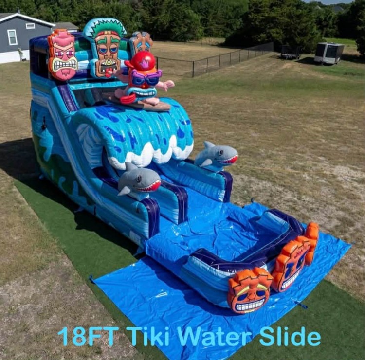Bring a tropical twist to your next event with the Tiki Tovi 18Ft Water Slide. This eye-catching rental adds a fun island vibe and delivers the kind of splashy excitement that keeps guests entertained for hours. With its tall 18-foot slide height, it makes a bold centerpiece for summer parties, backyard celebrations, school events, and any gathering where cool, fast-paced fun is the goal. It is a great choice for guests looking for a lively water slide experience with a playful tiki theme.